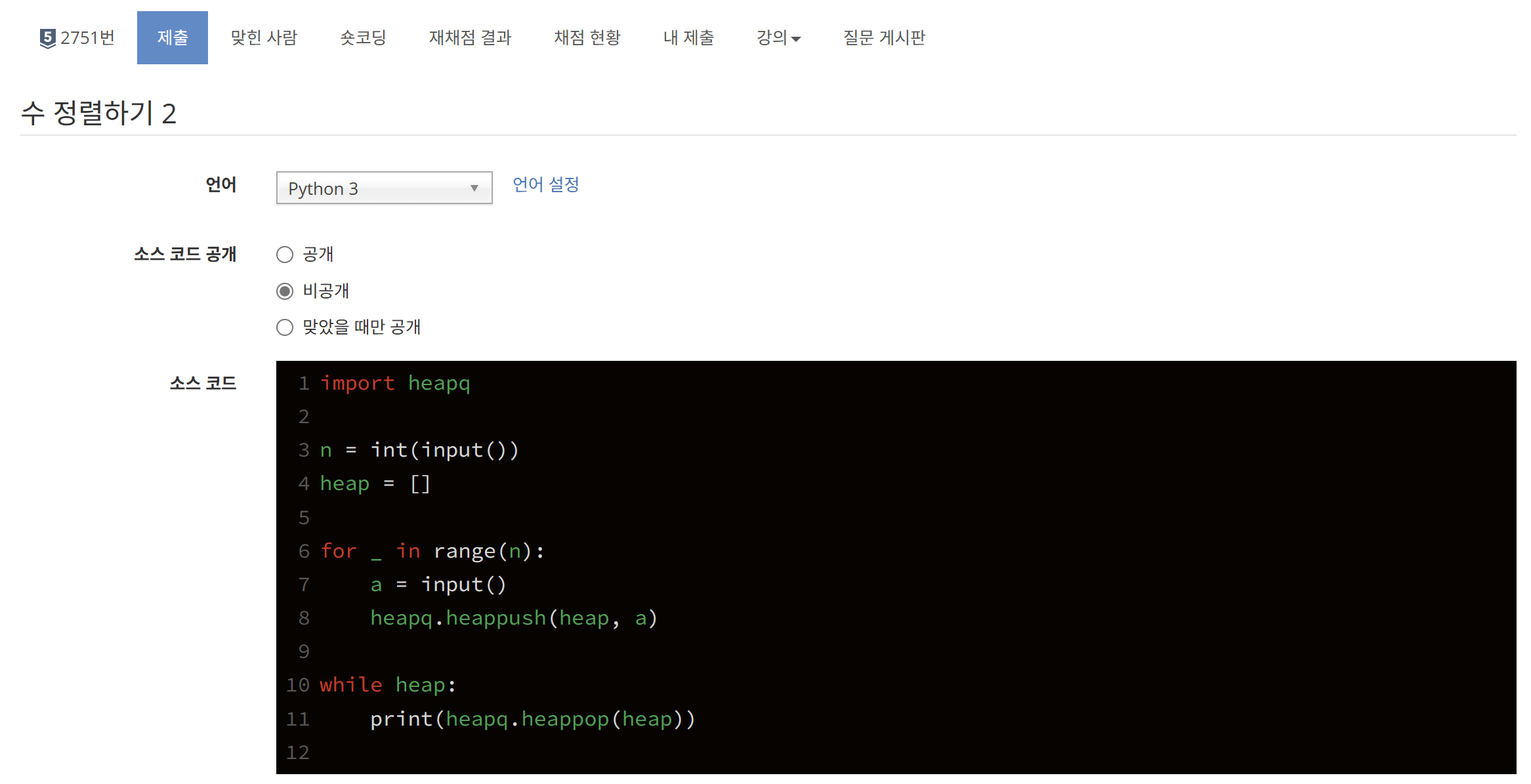 - heapq.heappush(heap, a) > a를 heap에 추가