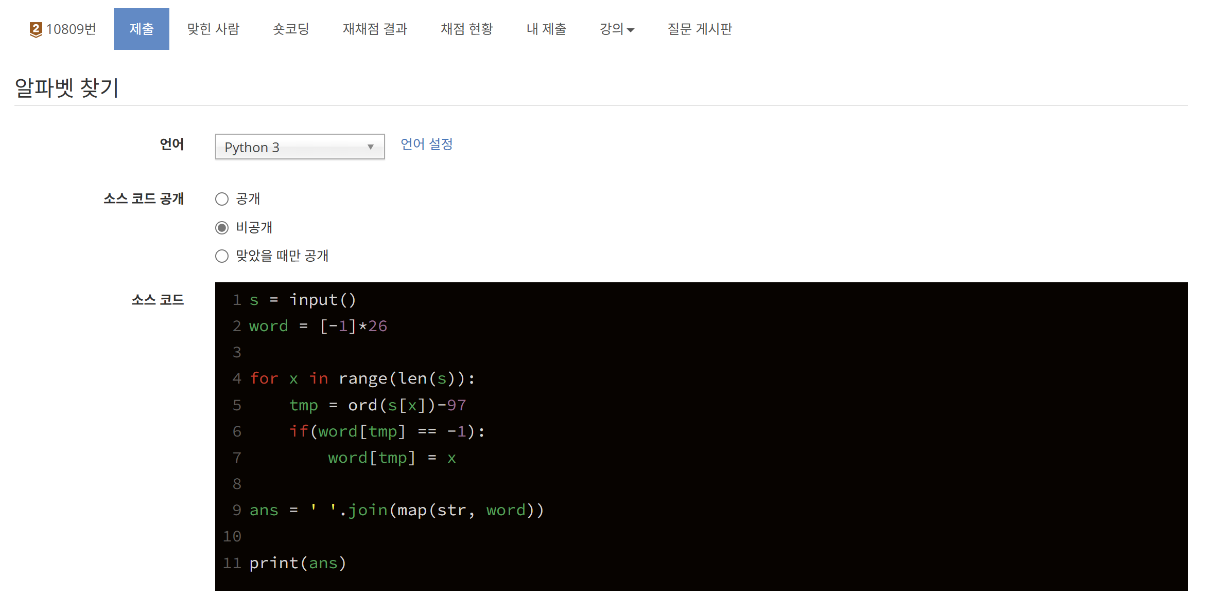 알파벳 소문자라 97을 빼줬음 (a=97이라 빼면 숫자 0)